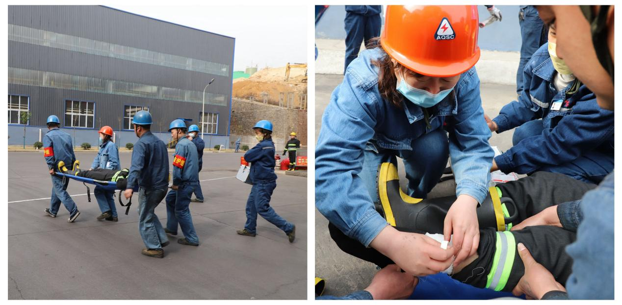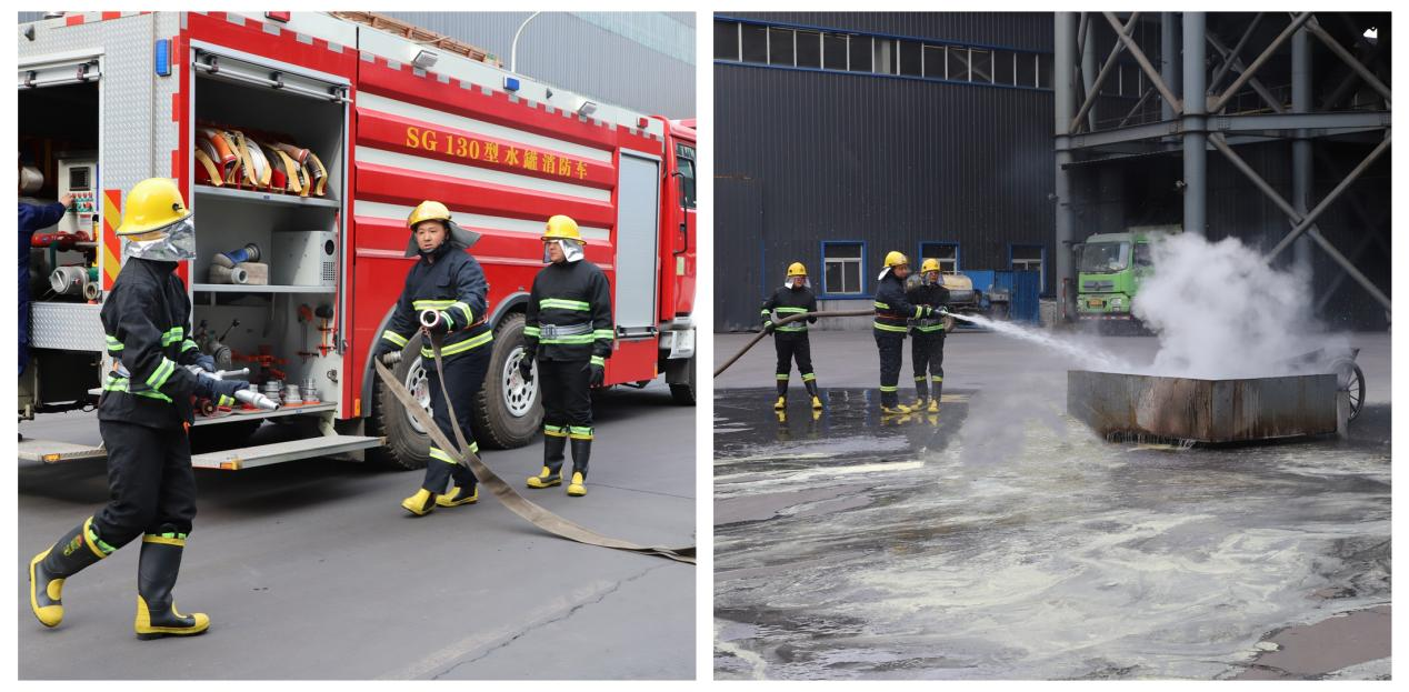各应急小组接到分工指示后迅速赶往现场,投入抢险工作中,在火灾面前临危不乱,有序进行初步灭火,展开现场警戒,安全疏散、帮助伤员撤离,转移物资等工作配合集团消防队快速灭火